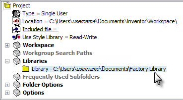 Library folder. For more information on Inventor projects, see the Inventor help.