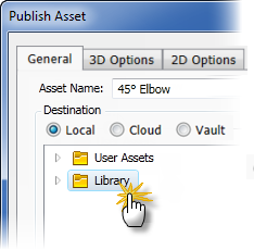 User Asset folder, or creating a new subfolder for the asset, determine whether the asset is to be local, published to the cloud, or published to Vault.