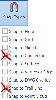 - Begin by enabling the Snap to Vertex or Edge and Snap to Trail Line snap-to options from the Snap Types drop-down menu on the Options panel. Disable the other snap-to options in the menu.