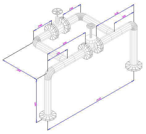 The CADmep Add Spool Dimension (SPOOLDIM) command lets you add dimensions to spool drawings quickly. Once the dimension points have been chosen, the <N> (Next) feature allows the dimension to be positioned in each of the X,Y,Z planes.