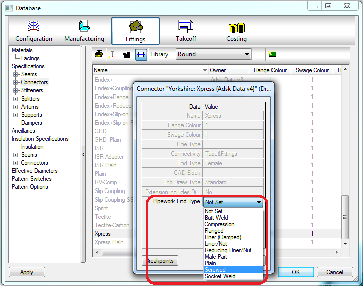 Pipework End Type. Ensure that the appropriate connection type has been set on the Pipework End Type property.
