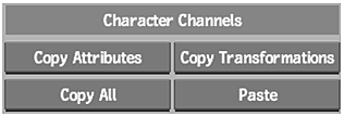 - In the Character Channels section of the Text menu, click Copy Attributes, Copy Transformations, or Copy All.