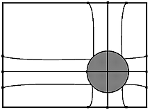 The following illustration shows the source and destination meshes needed to morph a square into a circle, both moving from the upper-left to the lower-right corner of the image window.