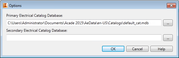 Locate and select the electrical catalog database you want to use as the secondary catalog database.