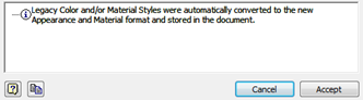 Materials are migrated from Material styles to Materials. There is not an option to defer this action. Custom materials that you have added are migrated. Use the new Material Browser and Material Editor to modify existing or create new materials.