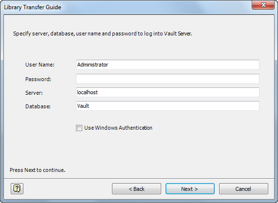 - Click "Transfer Library Guide..." button to launch the Transfer Library Guide dialog box. See Figure 2. Select From Autodesk Vault Server to Inventor Desktop Content.