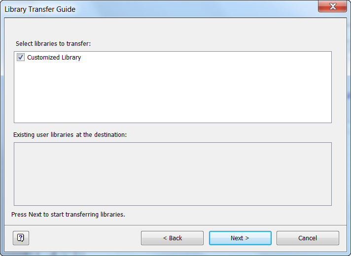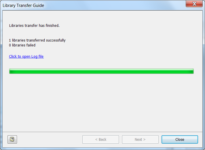- Click [Next] to transfer libraries. See figure 5. Click Close to finish.
