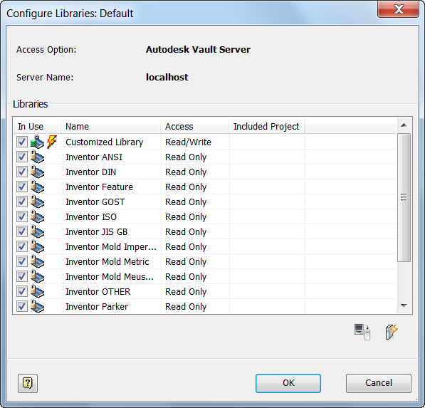 - In the Project dialog, click "Configure Content Center Libraries" button to launch the Configure Libraries dialog box. See Figure 1.