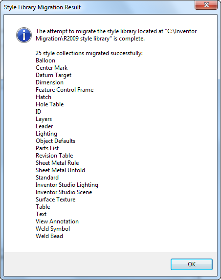 - Once migrated, you cannot use style libraries with older versions of Inventor.