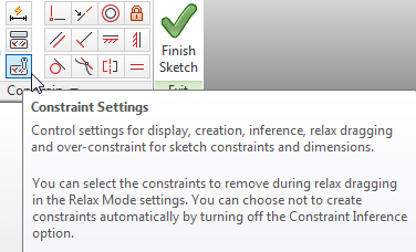 Improved access to 2D sketch constraints settings
