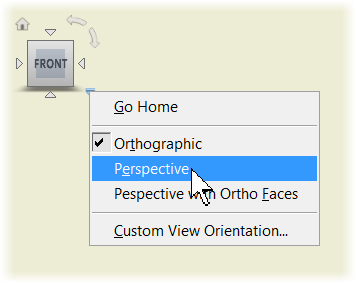 By default, Orthographic projection is used to create drawing views. To use Perspective projection, when you create a base view or edit a base view or independent projected view, right-click the view cube, and click Perspective.
