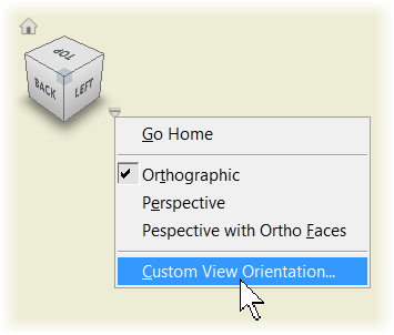 Right-click the View Cube, and click Custom View Orientation to enter the Custom View environment. Then specify the orientation of the custom view.