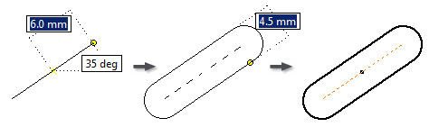 Center to Center Slot command creates a linear slot defined by orientation and length of the slot centerline, and by slot width.