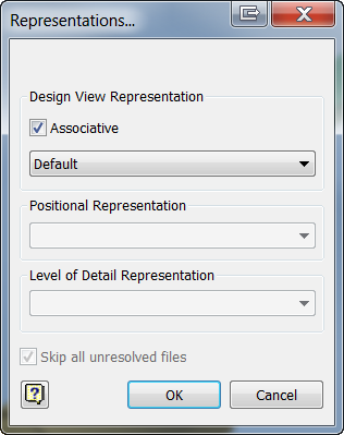 Use the new Representations dialog box to change the current design view and associativity. To access this new dialog box, right-click the Explosion node within your model browser in a Presentation and select Representations.