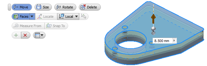 Edit parts quickly with Direct Edit. You can adjust size, shape, and/or location of model features by directly manipulating the geometry. Use Direct Edit when you want to:
