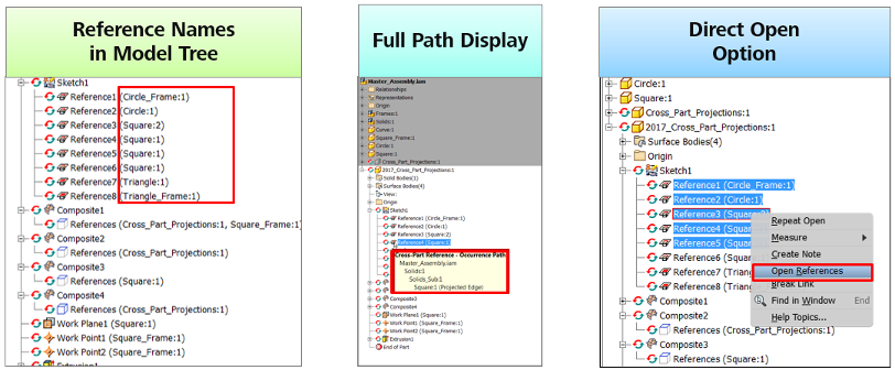 Enhanced reporting of cross-part references within assemblies helps you more easily identify and access related parts.