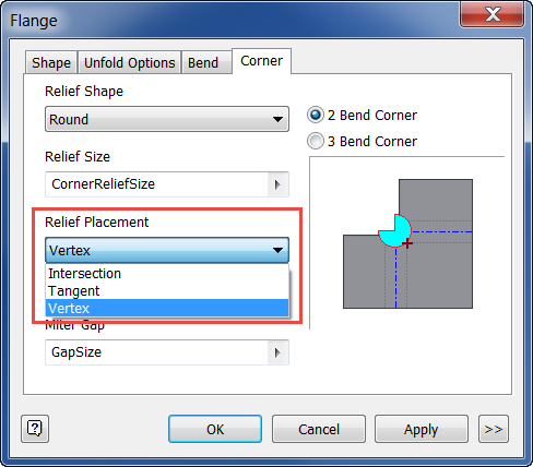 New workflow options and controls were added to the sheet metal environment in Inventor 2017: