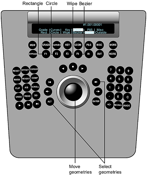 When the Geom menu is enabled, you can create and colour grade up to 12 secondaries by using the Function panel to: