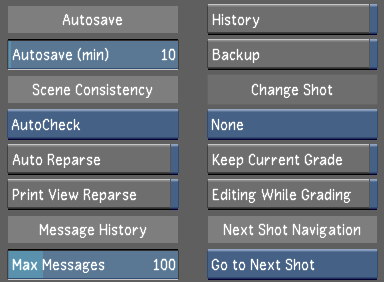 - Enable to create a history file for each grade whenever you save the grade. Any subsequent grade that you save will also save the cut and grade files to a unique <grdxx_bak> backup directory, which is automatically created in the current scene’s library sub-directory in the Project Home location. The backup directory name has the same name as the grade.