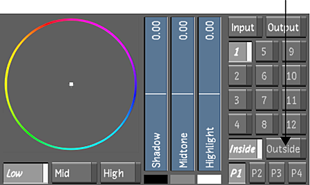 Note: Selecting Inside or Outside allows you to colour grade the inside or outside area of the secondary. If you do not activate either button, its colour grade will be hidden in the Player.