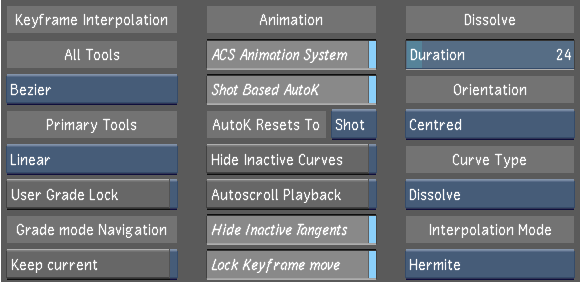 - Toggle to select Constant, Linear, Hermite or Bezier as the default interpolation mode for dissolves.