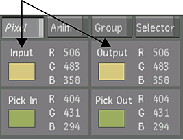 Both the original (Pick In) and modified (Pick Out) colours are displayed simultaneously in the lower section of the Pixel Analyser. The RGB values for the selected pixel are also displayed.