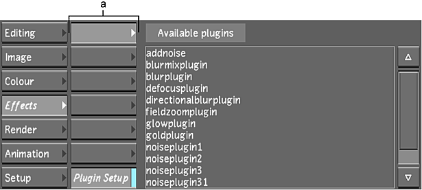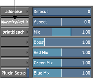 The plugin name on the button is highlighted and italicized and its parameters appear to the right of the buttons.