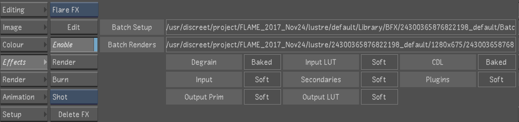 The steps marked as Baked are included in the Flare render whereas the steps marked Soft are applied live in Lustre on this new "source."