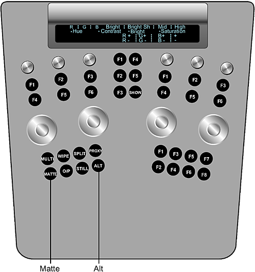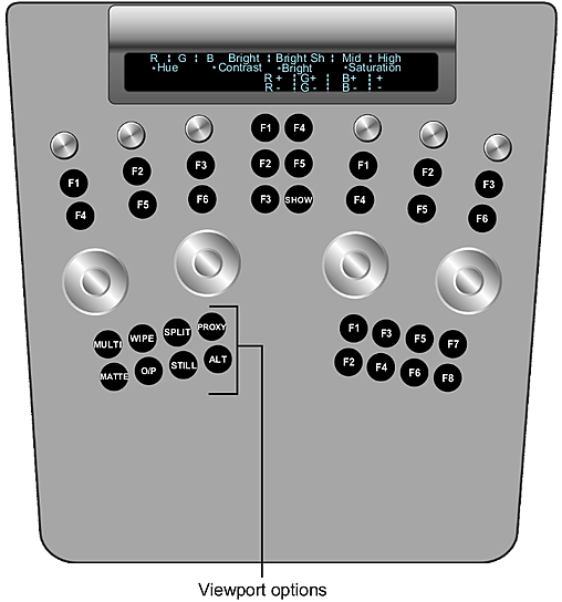 The View, Panel, Storyboard, Label, Thumbs, and GUI options appear in the digital display at the top of the panel. The location of each option in the digital display reflects their button position on the panel.
