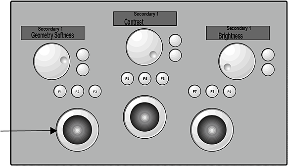 - To select a geometry, press F1 on the control surface and then use the left trackball to position the cursor over the geometry. Press F1 again to select it. Alternatively, press F2 and F3 to move back and forth through the geometries (listed in the Axes list).