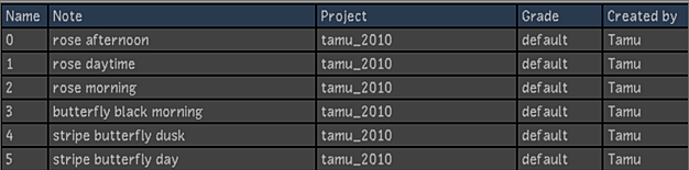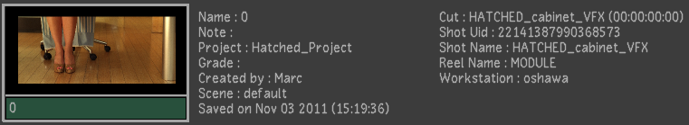 - Displays the name of the shot saved with the grade.