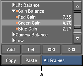 - Select whether to copy the current keyframe present at the location of the positioner (One Frame) or all keyframes (All Frames) for a selected channel or folder.