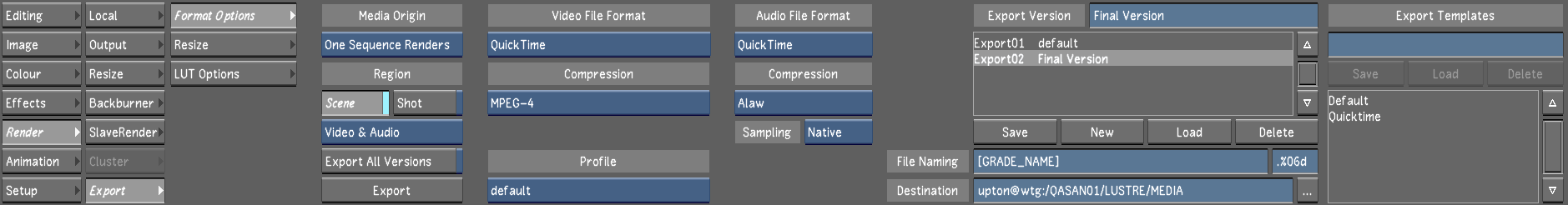 The Media Export workflow in Lustre is based on Export Versions: export configurations that are linked to a grade. Consequently, all the exports you create can be recalled for future use. Numerous options are available to suit multiple file delivery workflows.