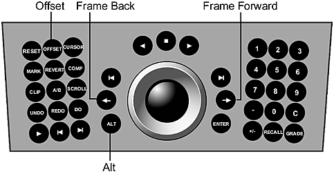 - Hold down the ALT button on the Navigation panel and then press the Frame Forward or Frame Back button to temporarily apply the grade from the previous or next shot to the current shot.