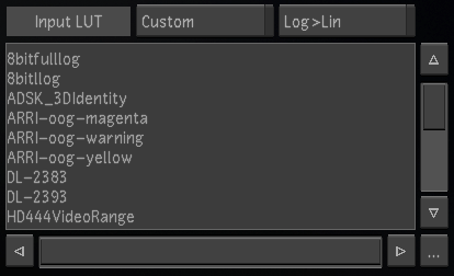 - Enable to select a custom input LUT (an input LUT other than the Log-to-Lin LUT). See Input LUTs.