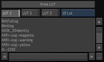 - Select a print LUT from each list after you enable one of the Print LUT buttons. You can import a LUT into the list. See Importing a LUT File.