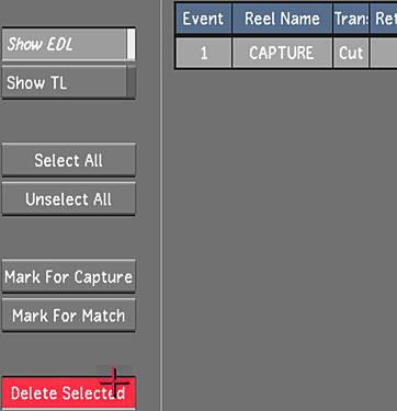 - In the Capture from group, click EDL once and then confirm the action by clicking EDL a second time.