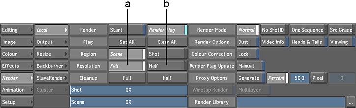 You can render your original shots at full resolution, which is the same resolution as the original footage, or at half resolution. You can also render resized shots at either full or half resolution. If you use half-resolution scans as the source, they can affect the quality of the output but are usually faster to process. You may opt to do this if you want a quick, intermediate render as opposed to a final quality render.