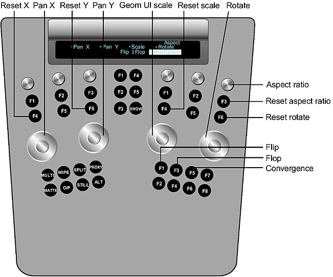 | Wheels | Reposition the image. Wheel 1=Pan X Wheel 2=Pan Y Wheel 3=Scale Wheel 4=Rotate To reset a wheel, press the button above it. |