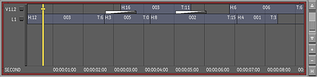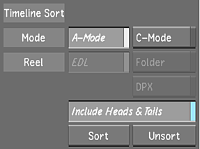 When you use A-mode to sort your timeline, your shots are organized according to their time location within the sequence (i.e., the record timecode). The shots are displayed one after another on a single layer and any dissolves and retimes are not displayed.