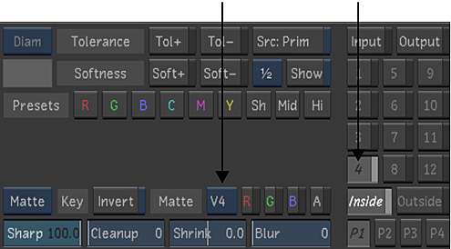 In the following screenshot, the matte on the V4 track is applied to the fourth secondary colour grading layer.
