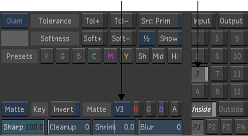 In the following screenshot, the matte on the V3 track is applied to the third secondary colour grading layer.
