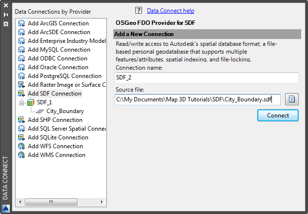 Select the SDF provider and navigate to the sample file, CITY_BOUNDARY.SDF.