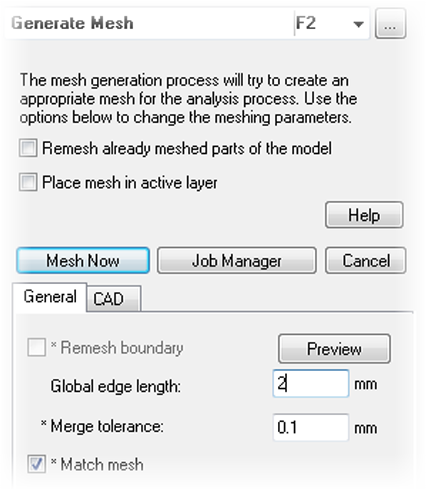 Enter 2 (mm) as the Global edge length , then click Mesh Now.