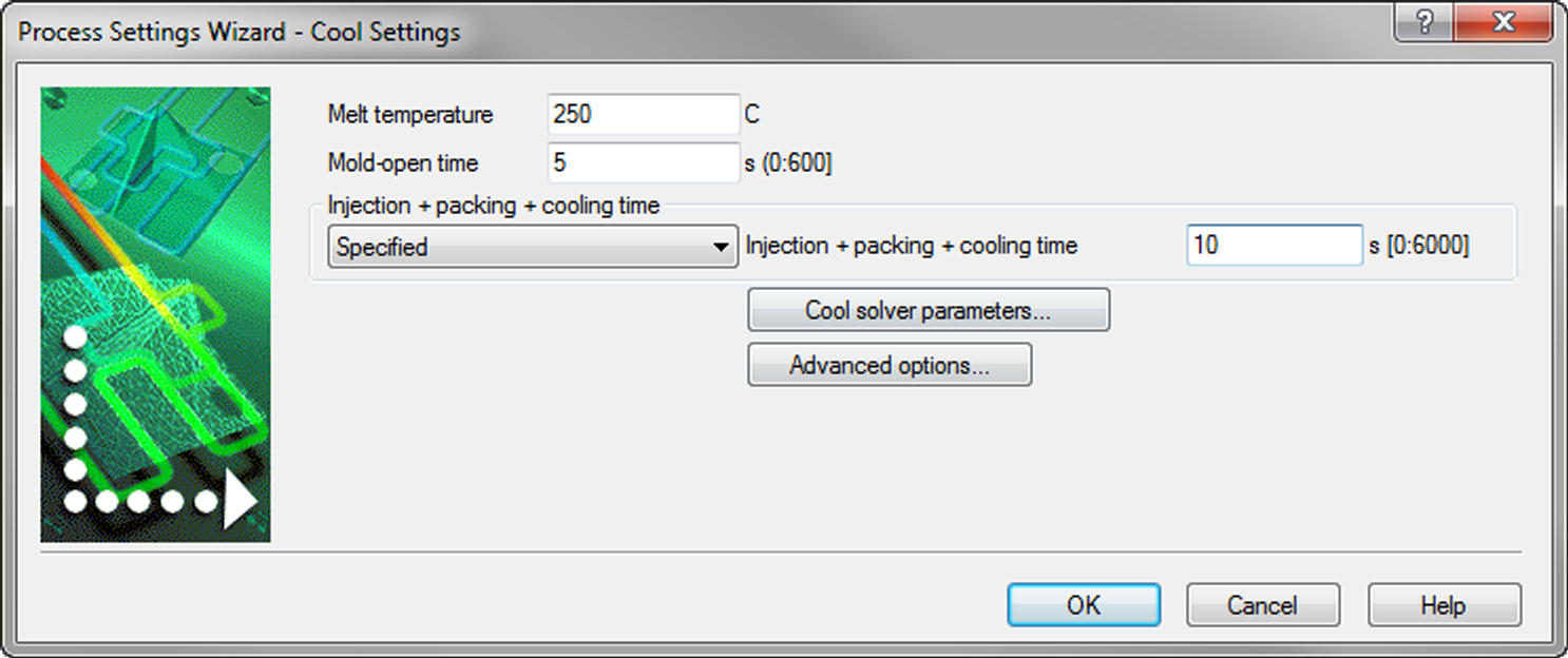 Set the Injection + Packing + Cooling time to 10 seconds.