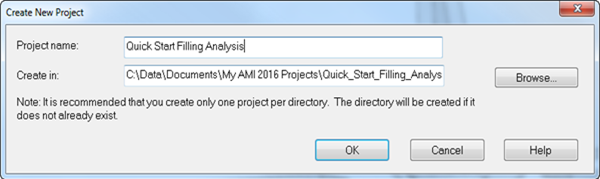 On the new project dialog box, Enter the project name Quick Start Filling Analysis then click OK.