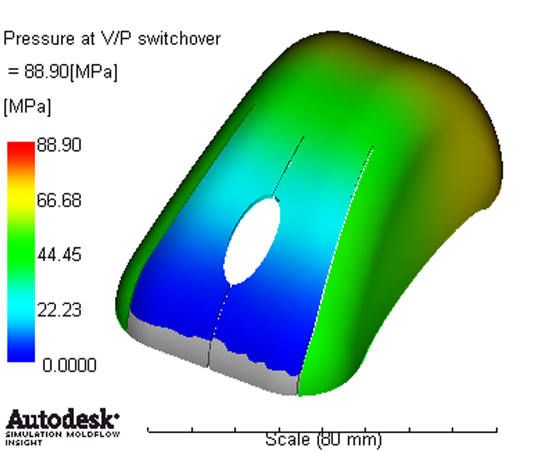 In this step, you review the Pressure at the Velocity / Pressure switch over results.