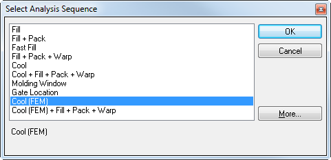 Note: If you do not see an analysis sequence, click More to see all that are available for the molding process.