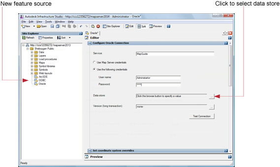 - On the Autodesk Infrastructure Studio toolbar, click Save to store this connection resource in the repository.