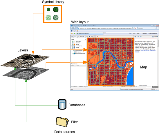 The following diagram shows how you assemble Autodesk Infrastructure Studio resources to build a web layout.